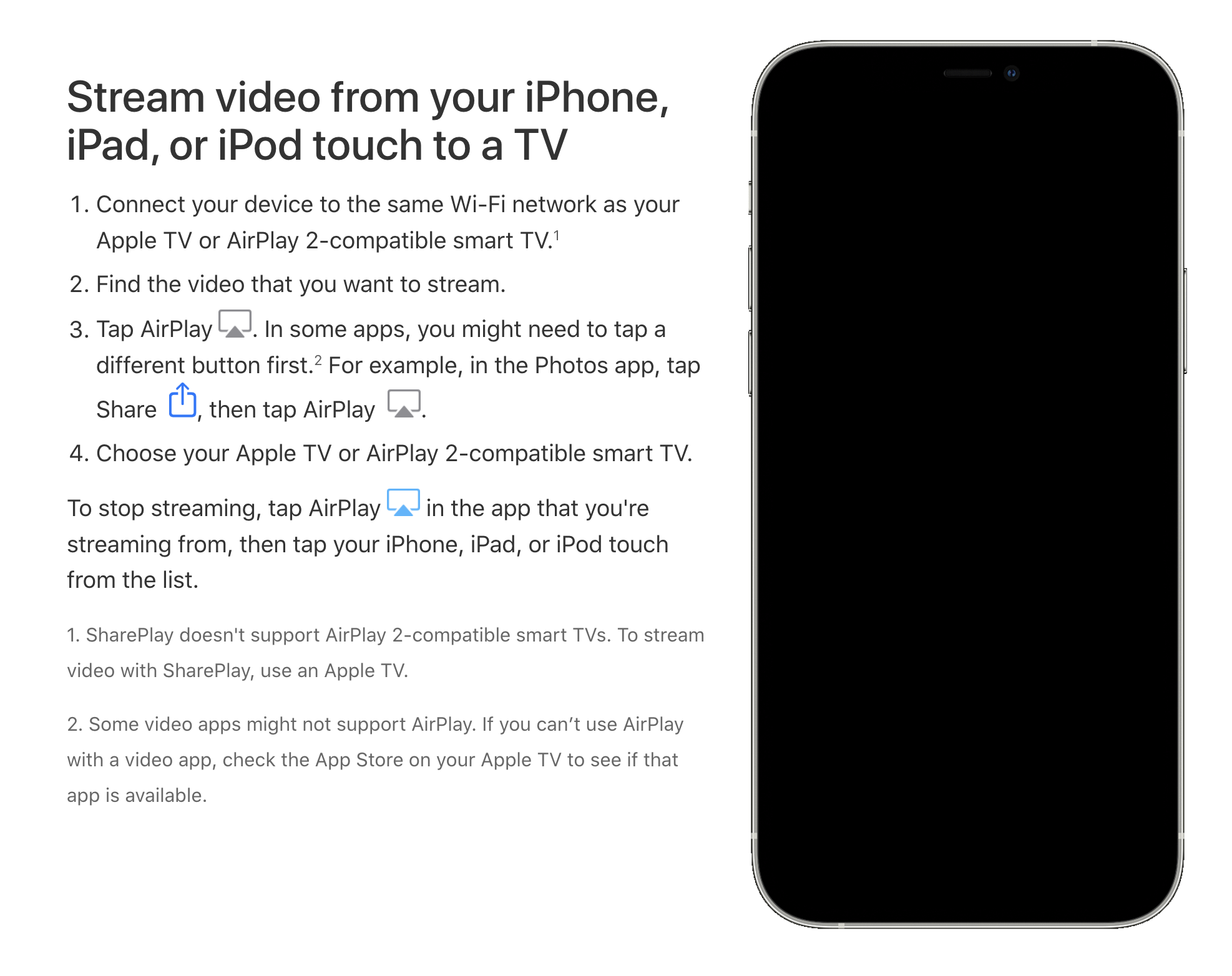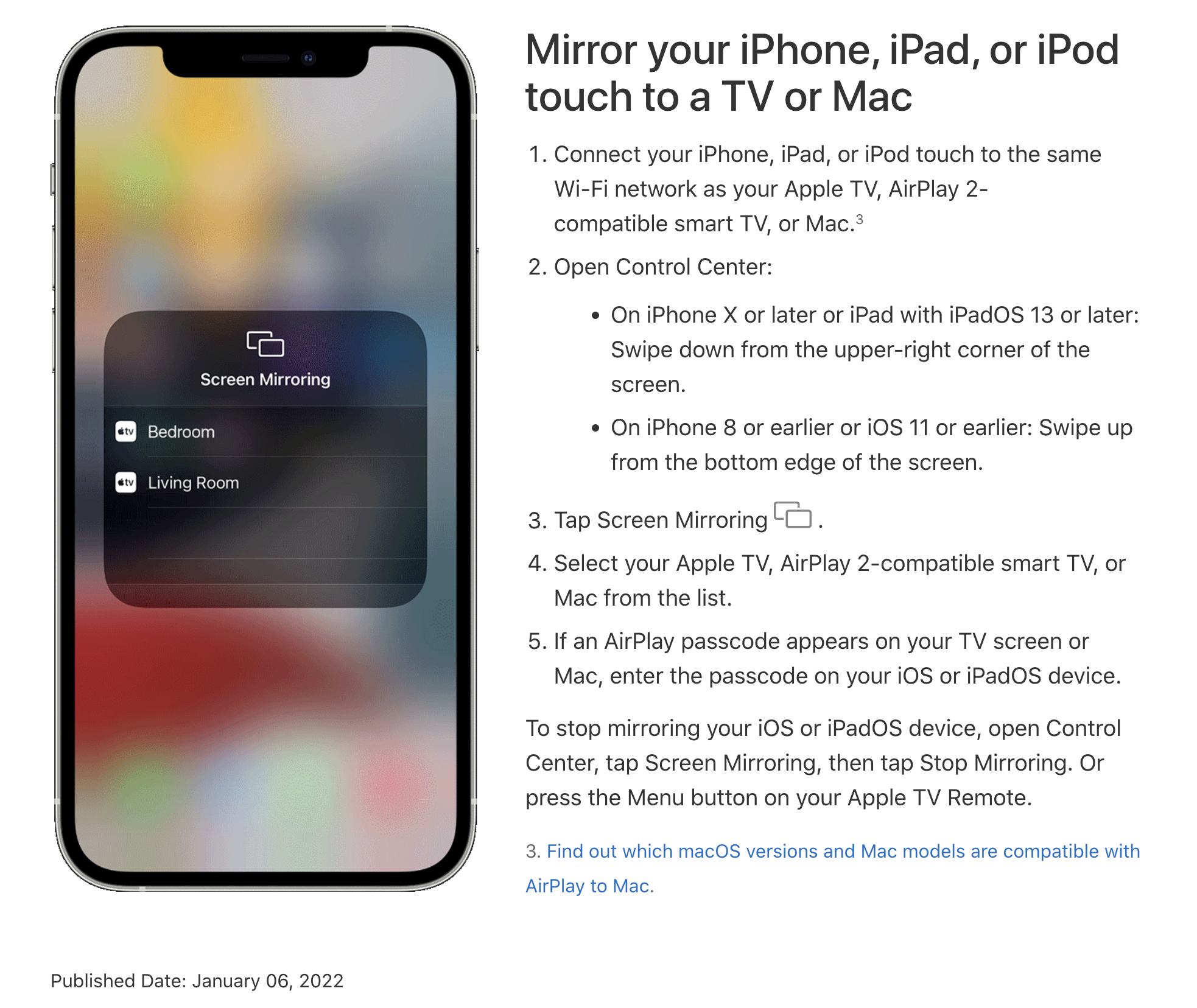 Use AirPlay to stream or share content from your iPad to your Apple TV or Macbook. Stream a video. Share your photos. Or mirror exactly what's on your device's screen.