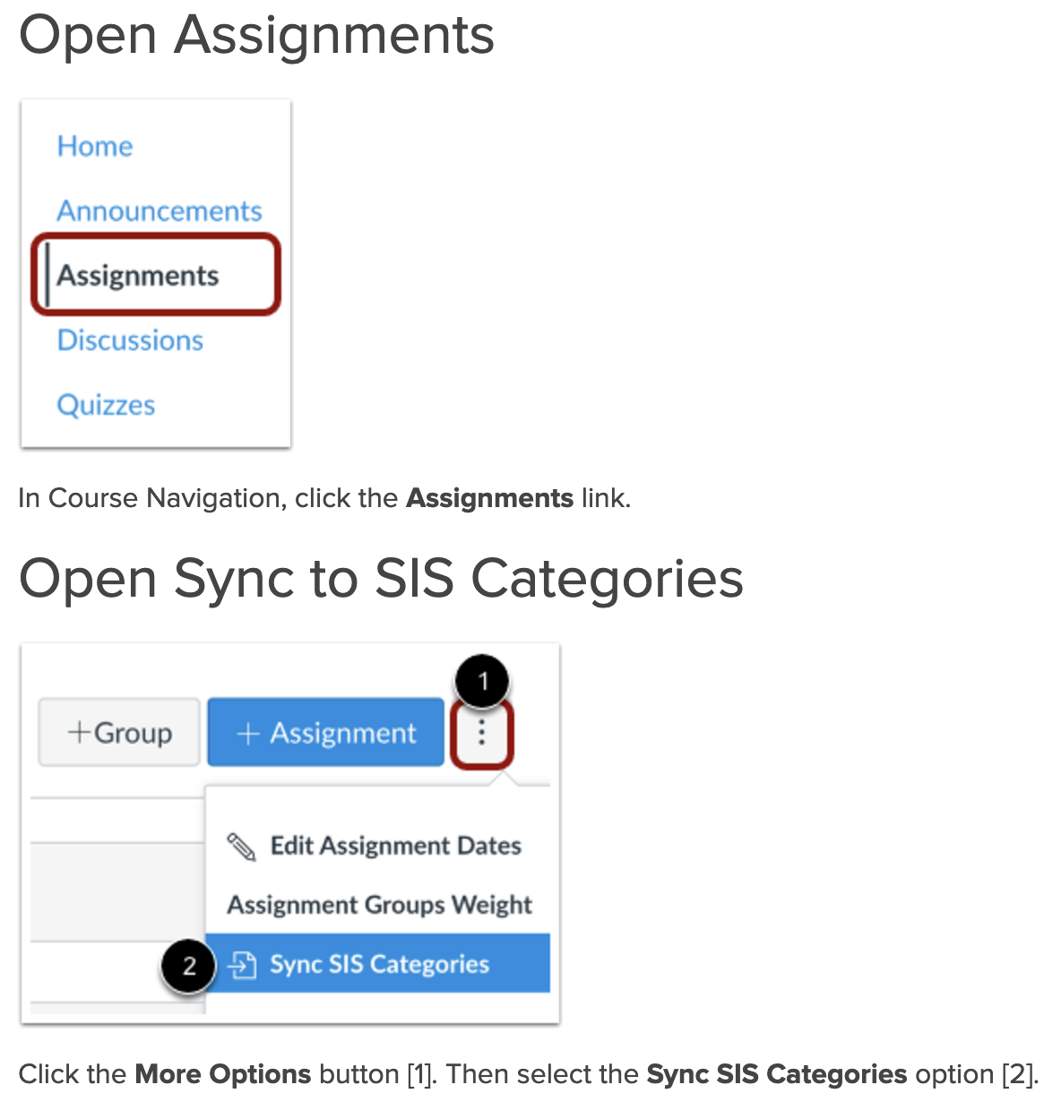 How to Sync Canvas assignment groups to my Genesis grading categories for Grade Passback? (GPB)