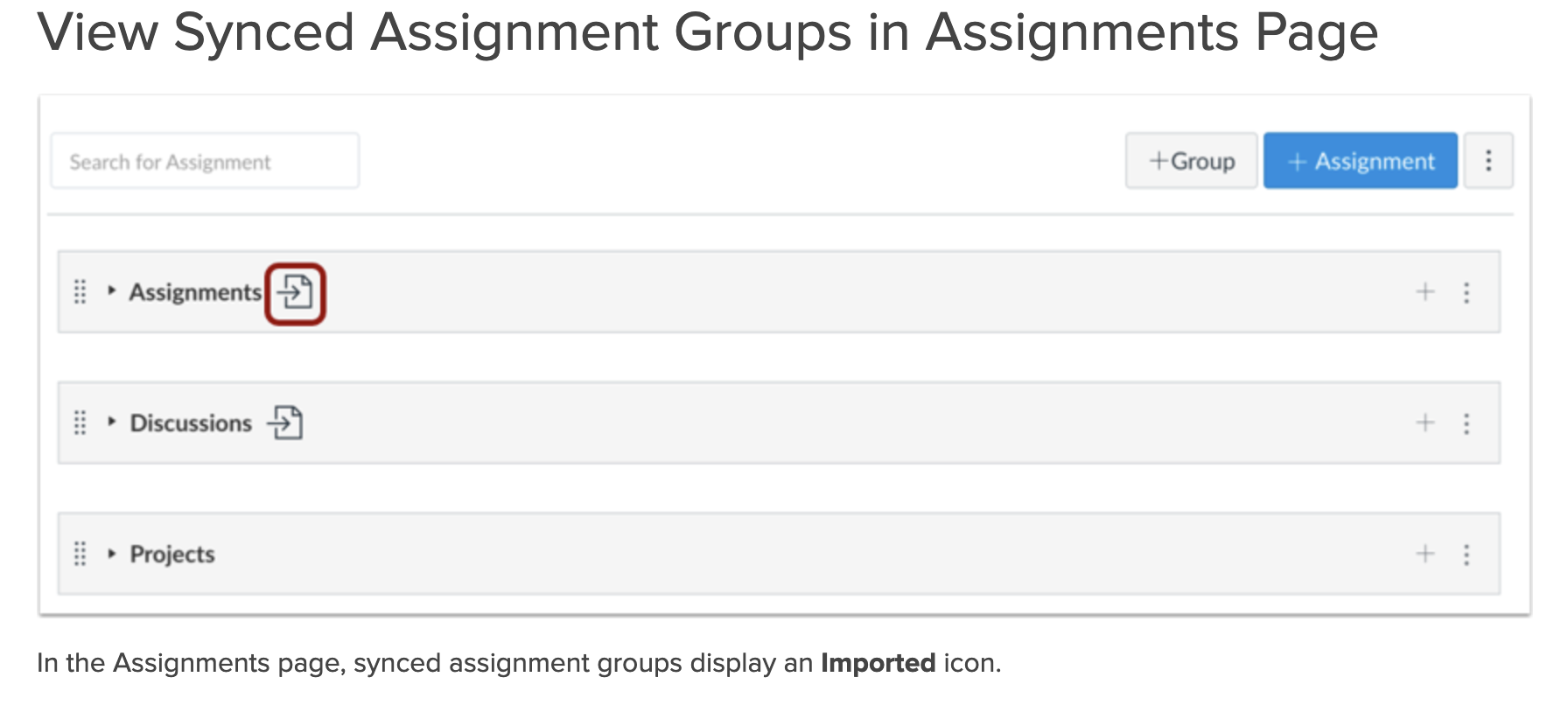 - Assignments that are differentiated somehow, like extra time for different individuals or groups, will not sync.