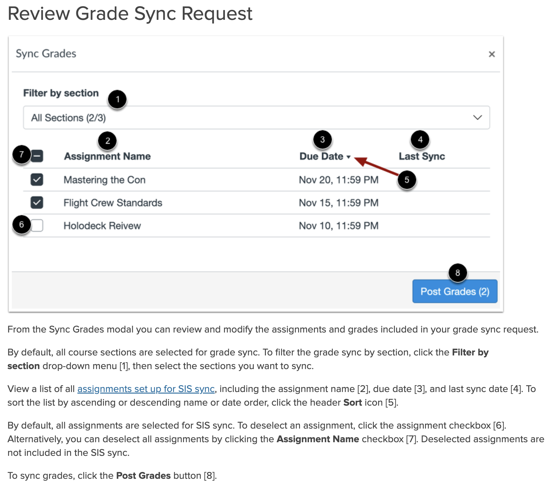 Note: Assignments must have a numeric score and due date to sync correctly.