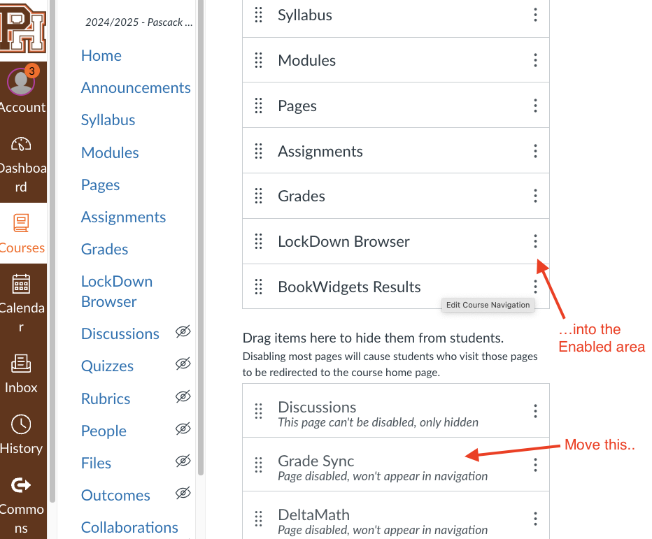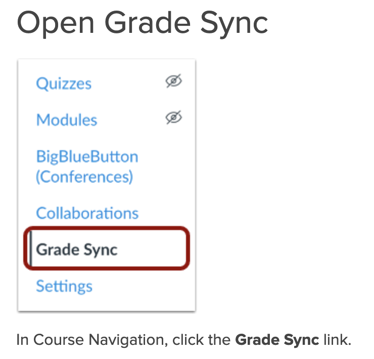 If you do not see the Grade Sync menu item in your Canvas course, you will need to enable it to make it visible.