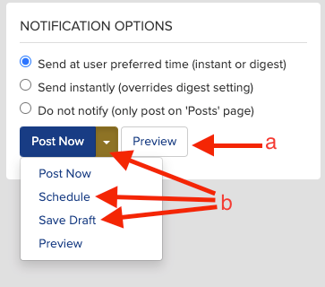 - Preview - in the notification options, click the Preview button to see what the post will look like.