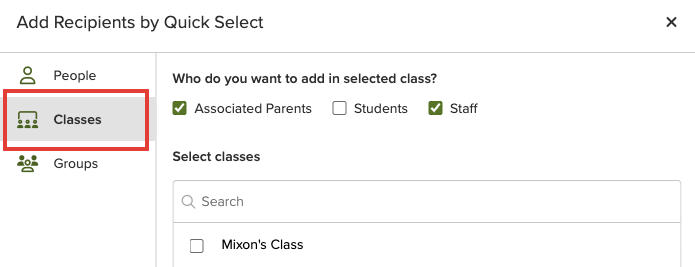 - Select Classes or Groups on the left, who you want to add, and then select one or more classes or groups. Click Add recipients.