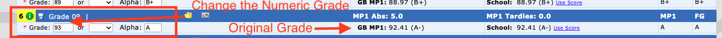 **Note: In the past you were able to change the Alpha Grade to override grades, but now you must edit the numeric grade.