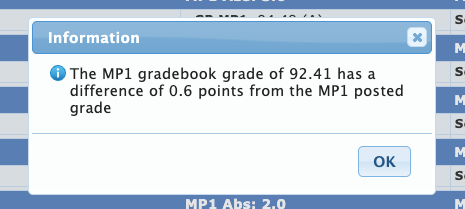 If you override a numeric grade, you will receive this message that the Gradebook Grade has a difference from the Posted Grade.