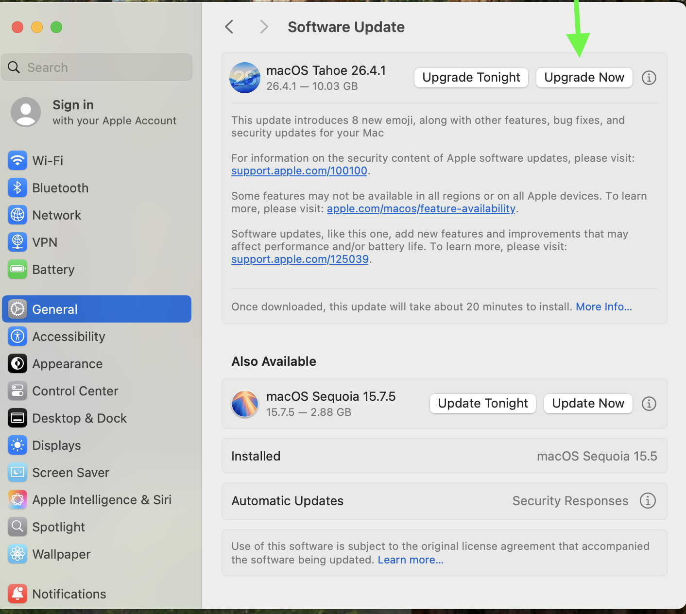 Laptop will identify updates that are available. Best option is to "Upgrade Now" and select the latest OS update if more than one are available.