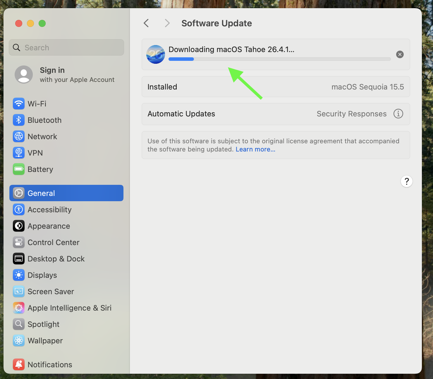 Watch in amazement as OS is downloaded. Download time will vary depending on the size of the update and speed of your internet connection.